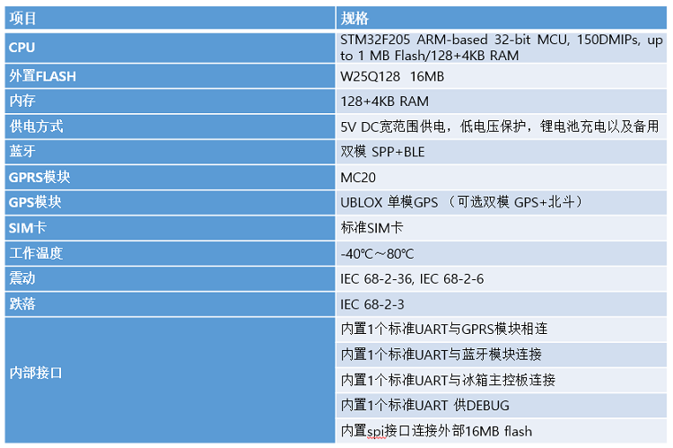設(shè)備周期上報(bào)溫度、濕度、電量,以及各種工作狀態(tài)的數(shù)據(jù),IOT核心板接收以后進(jìn)行數(shù)據(jù)分析,并上報(bào)數(shù)據(jù)和當(dāng)前GPS信息,用戶可以隨時(shí)查看,若發(fā)現(xiàn)冰箱狀態(tài)異常系統(tǒng)將即時(shí)上報(bào)。
